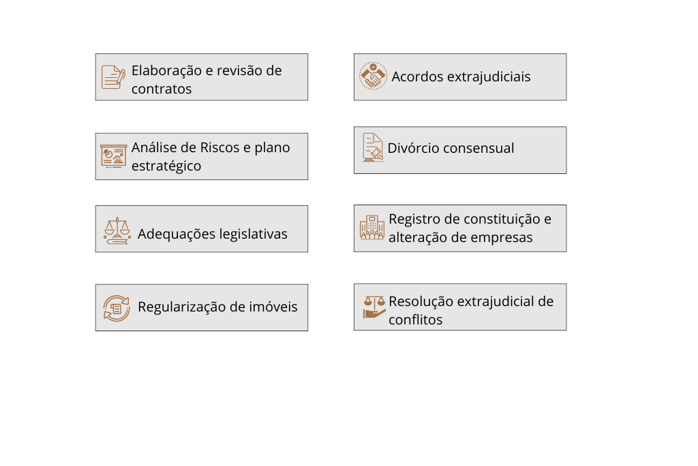 Seja para empresas que desejam se blindar contra possíveis riscos legais ou para indivíduos que buscam soluções rápidas e menos burocráticas para conflitos, contar com uma assessoria jurídica focada na prevenção e na atuação extrajudicial pode fazer toda a diferença. Nossa equipe de advogados está pronta para oferecer orientação e suporte em todas essas frentes, trabalhando para garantir a segurança jurídica necessária para que seus negócios e relações pessoais possam prosperar com tranquilidade.
